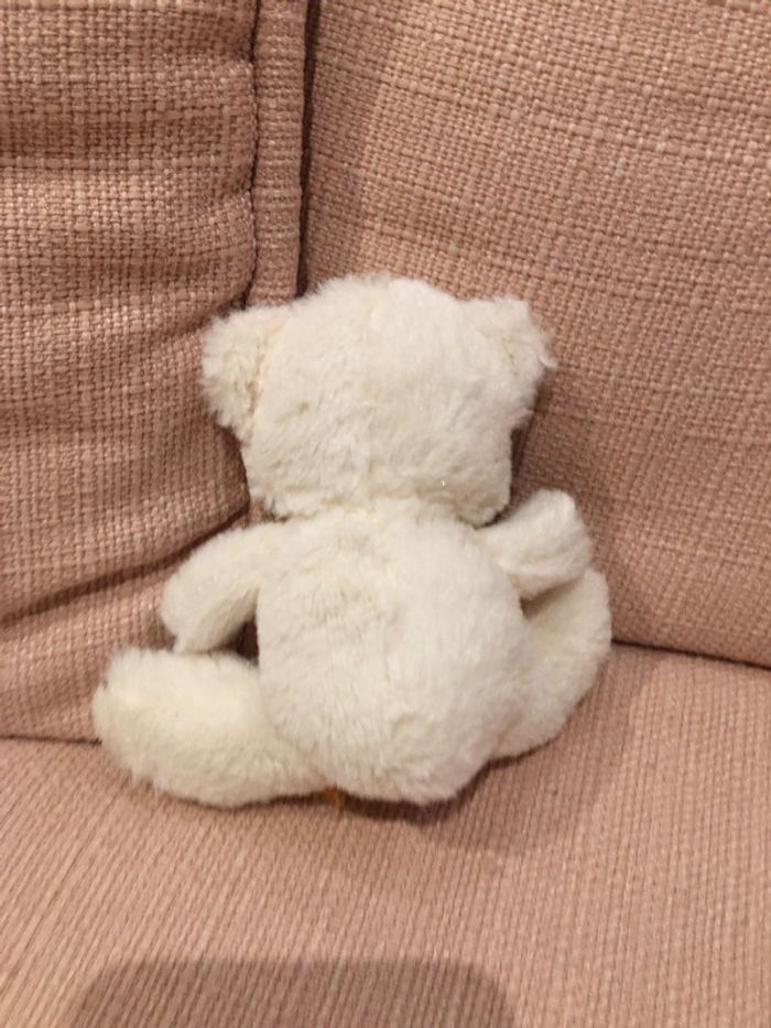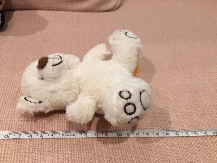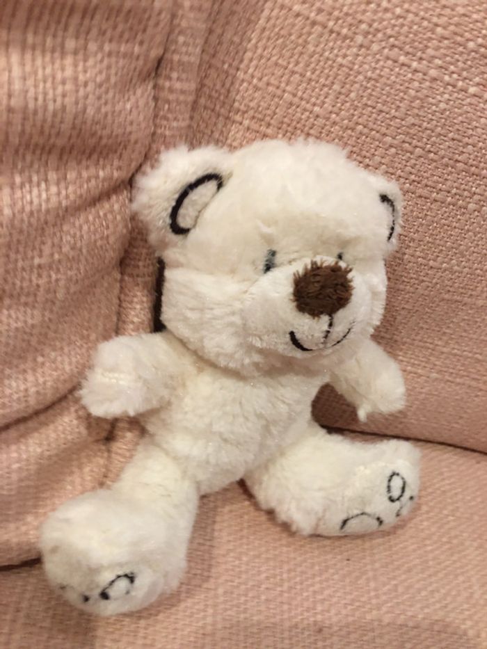 doudou peluche ours blanc crème broderies marrons formes arrondies bras et jambes souples tissu doux hauteur 14 cm
