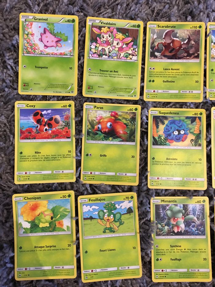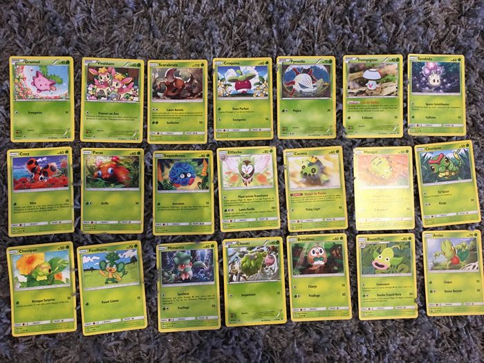 cartes Pokémon français 21 cartes base lot n•96 coloris vert