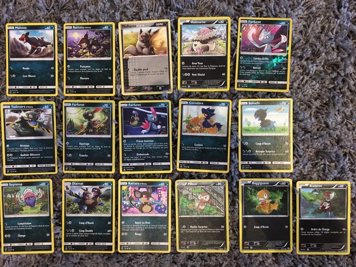 cartes Pokémon français 16 cartes base lot n•90 coloris bleu vert foncé