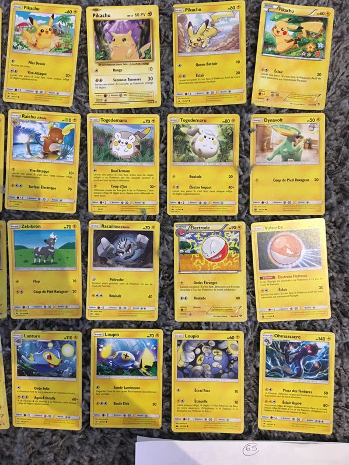 cartes Pokémon français 24 cartes base lot n•65 coloris jaune