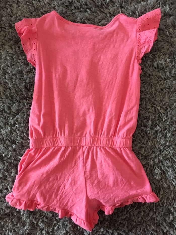 Salopette combinaison manches courtes bébé fille Zara rose fluo uni + petites fleurs - photo numéro 3