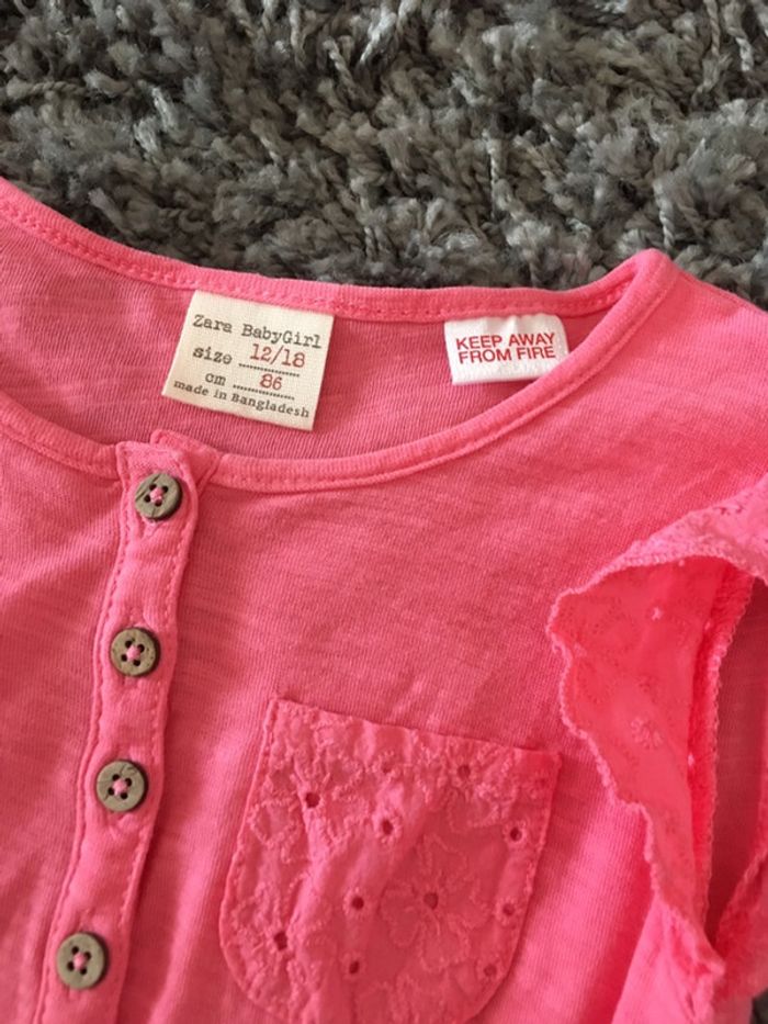 Salopette combinaison manches courtes bébé fille Zara rose fluo uni + petites fleurs - photo numéro 5