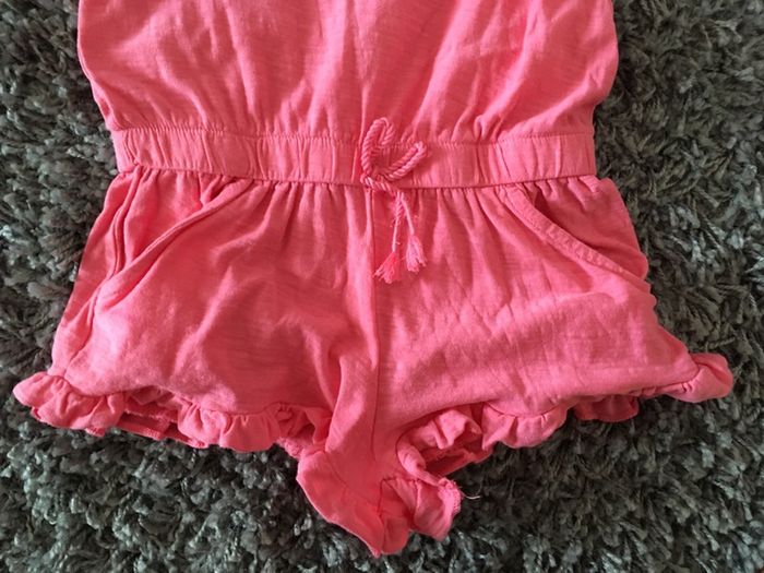 Salopette combinaison manches courtes bébé fille Zara rose fluo uni + petites fleurs - photo numéro 2