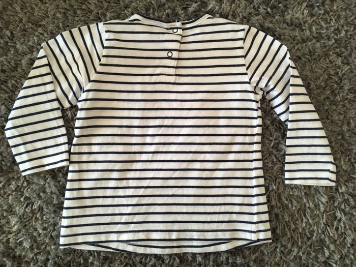 Tee-shirt manches longues bébé fille Tape à l’œil blanc bleu Marine à rayures avec visuel paillettes - photo numéro 2