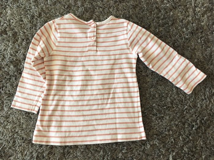 Tee-shirt manches longues bébé fille Tape à l’œil blanc rayé rose avec étoiles paillettes et texte - photo numéro 3