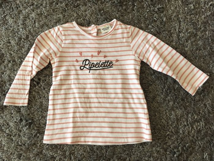 Tee-shirt manches longues bébé fille Tape à l’œil blanc rayé rose avec étoiles paillettes et texte