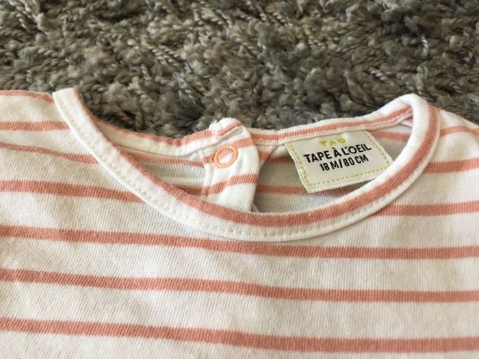Tee-shirt manches longues bébé fille Tape à l’œil blanc rayé rose avec étoiles paillettes et texte - photo numéro 5