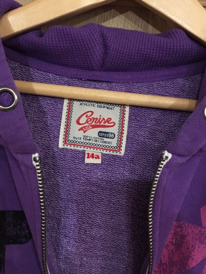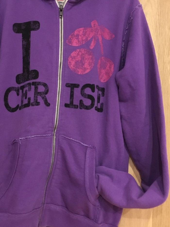 Sweat zippé à capuche manches longues Le temps des cerises violet rose noir - photo numéro 5