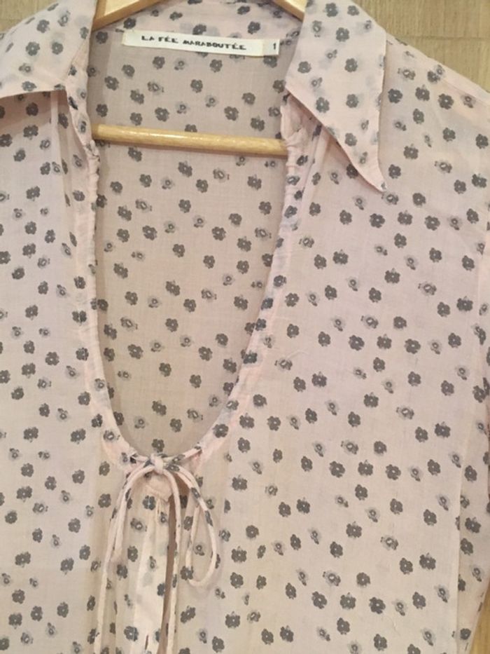 Chemise manches longues femme La Fée Maraboutée rose gris à fleurs - photo numéro 2