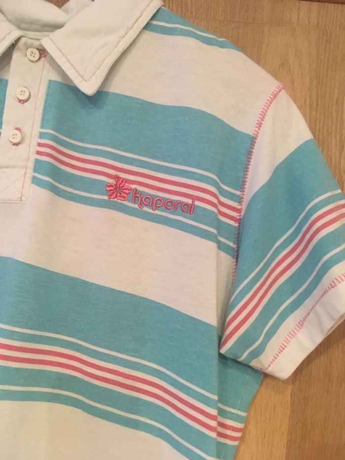 Polo manches courtes homme Kaporal bleu blanc rose à rayures - photo numéro 2