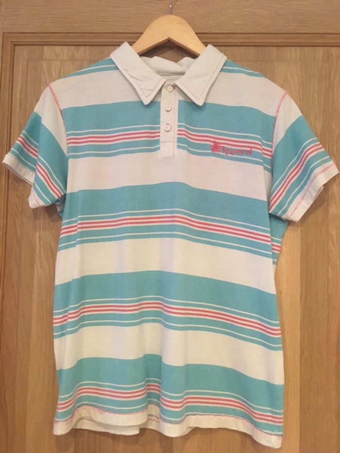 polo manches courtes col polo ouverture milieu devant avec patte de boutonnage visuel: broderie finition: rib surpiqûres contrastées coupe droite tissu à rayures