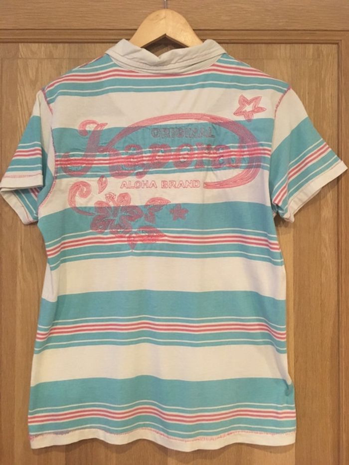 Polo manches courtes homme Kaporal bleu blanc rose à rayures