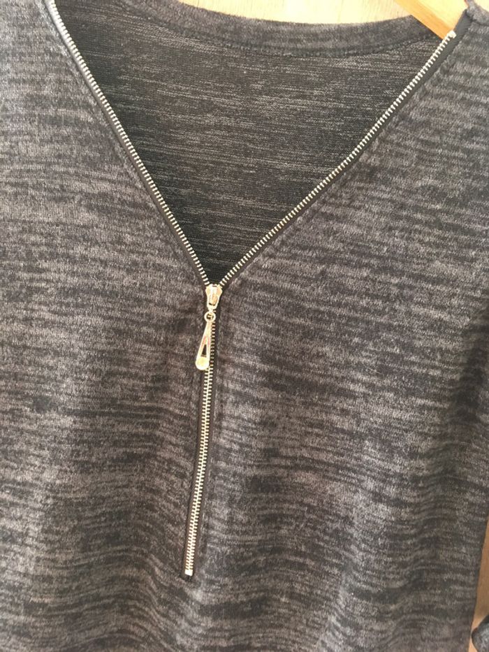 Pull encolure en v avec zip manches long noir gris - photo numéro 1
