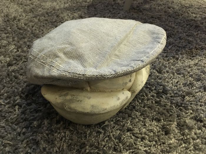 casquette plate avec visière tissu toile rayée pattes décos sur les cotes avec boucles élastiques sur côtés badge déco au dos découpes surpiquées intérieur doublé tour de tête: 55 cm élastique serré / 60 cm élastique tendu
