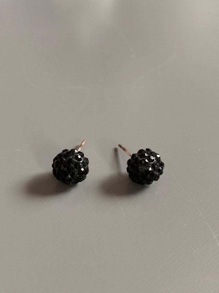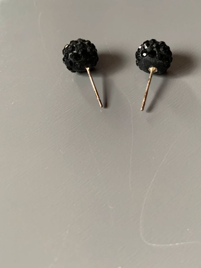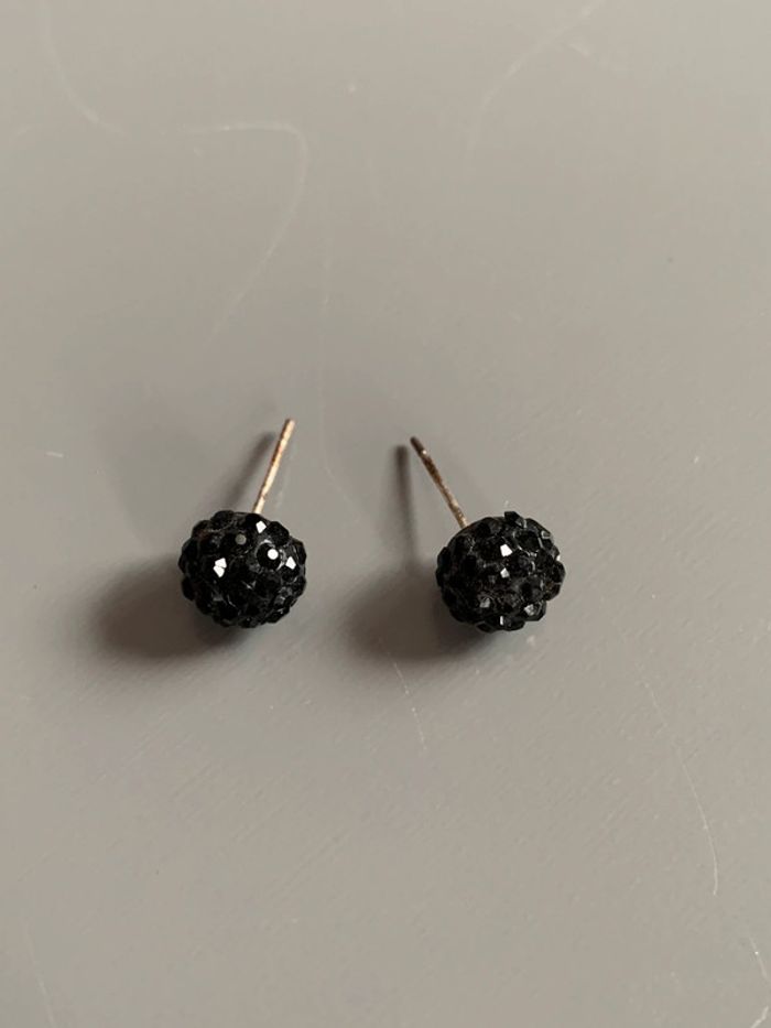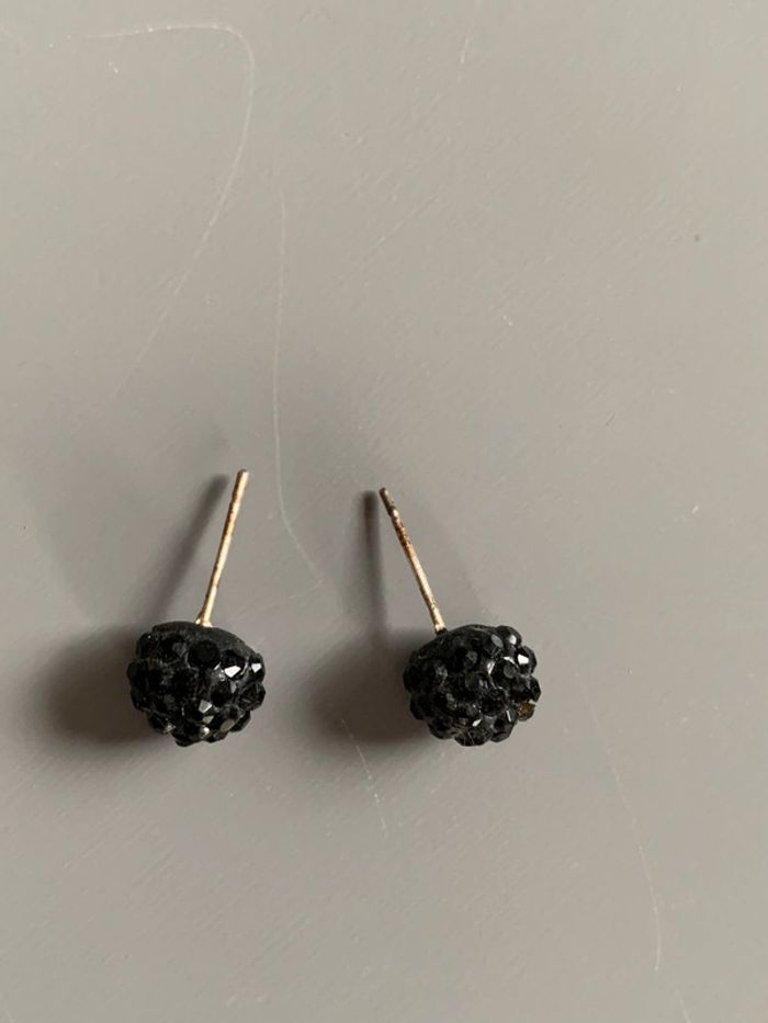 boucles d’oreilles Adopt’ Boules pierres strass noirs  Structure argentée sans fermoirs - photo numéro 1