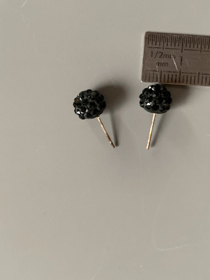 boucles d’oreilles Adopt’ Boules pierres strass noirs  Structure argentée sans fermoirs - photo numéro 7