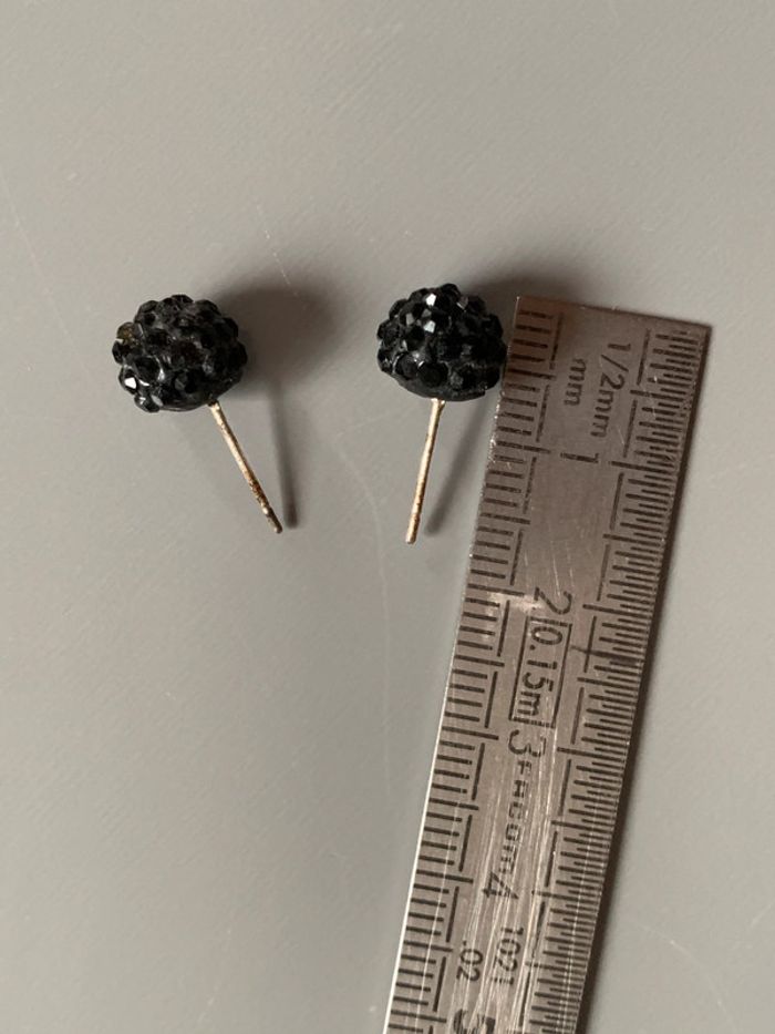 boucles d’oreilles Adopt’ Boules pierres strass noirs  Structure argentée sans fermoirs - photo numéro 5