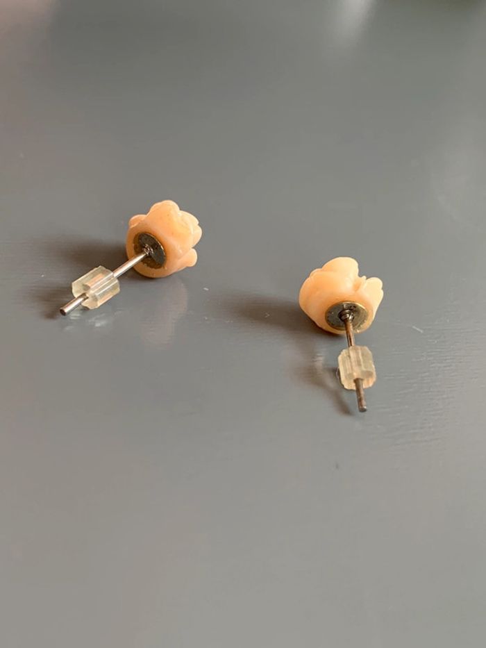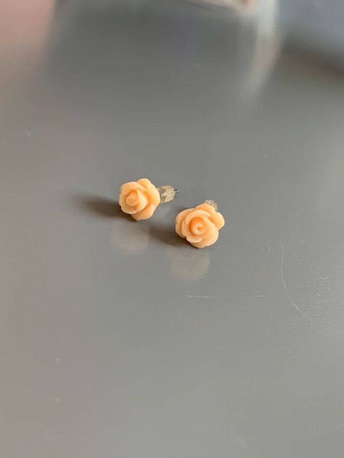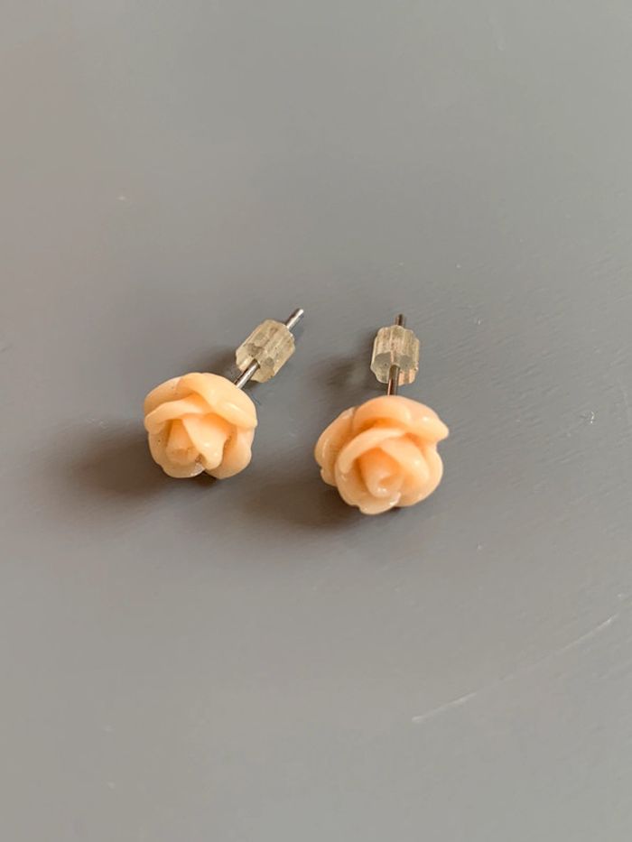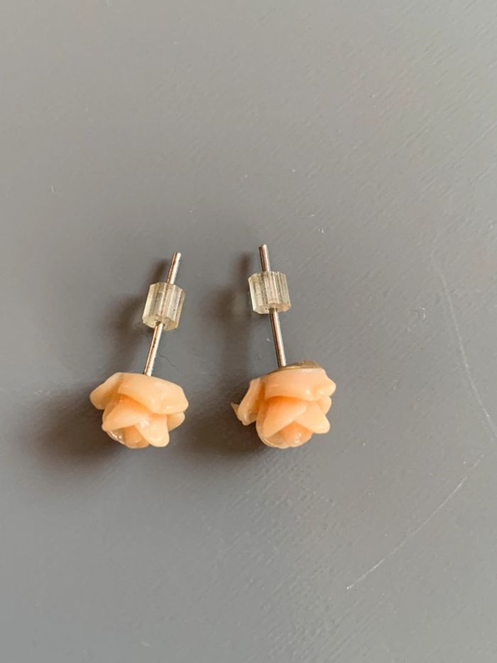 boucles d’oreilles Adopt’ fleurs  Rose orangé - saumon abricot structure argentée  Avec fermoirs - photo numéro 3