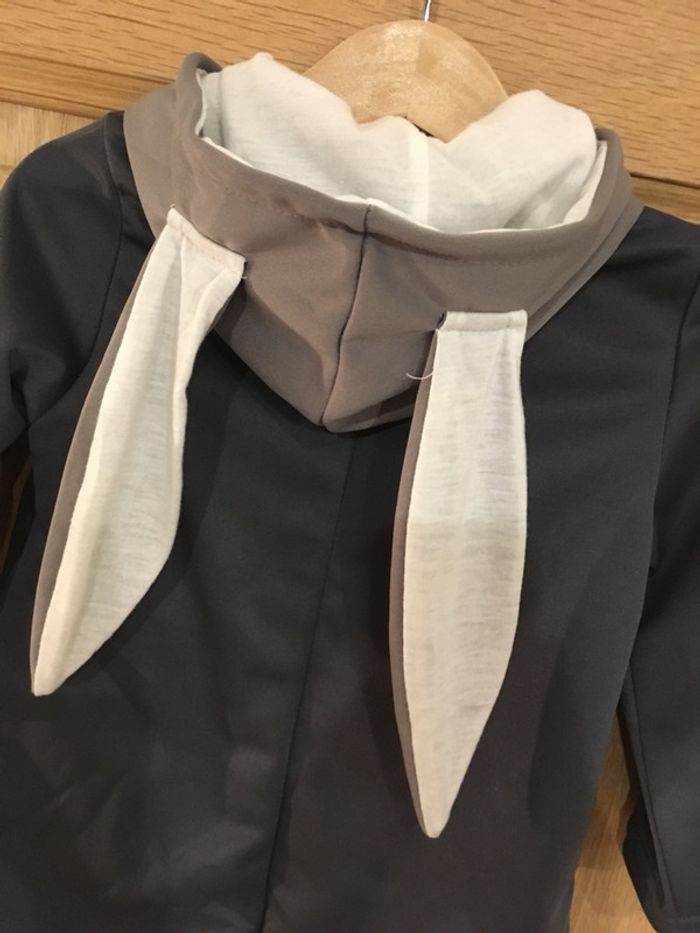 Veste manches longues à capuche lapin bébé fille gris anthracite blanc - photo numéro 4