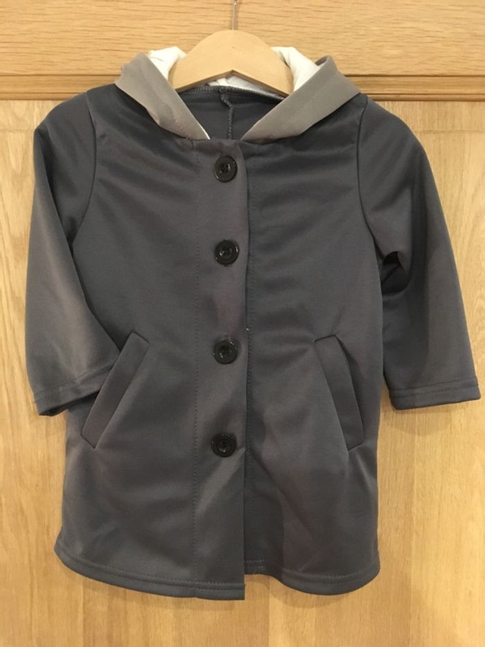 Veste manches longues à capuche lapin bébé fille gris anthracite blanc - photo numéro 1