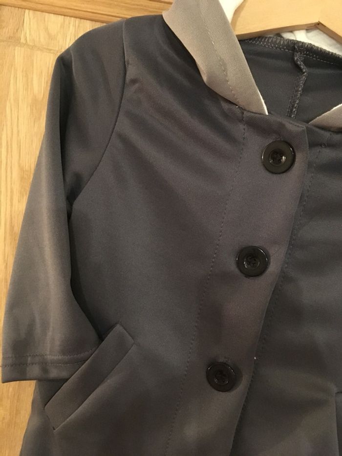 Veste manches longues à capuche lapin bébé fille gris anthracite blanc - photo numéro 3