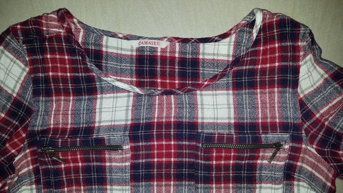 Une tunique Camaïeu de taille 38 et de marque Camaïeu manches longues retroussables en très bon état deux poches poitrine