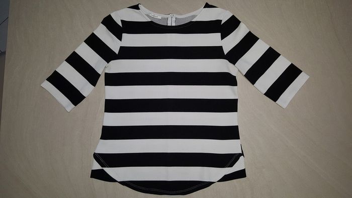 Un tee-shirt rayé noir et blanc de taille M en très bon état