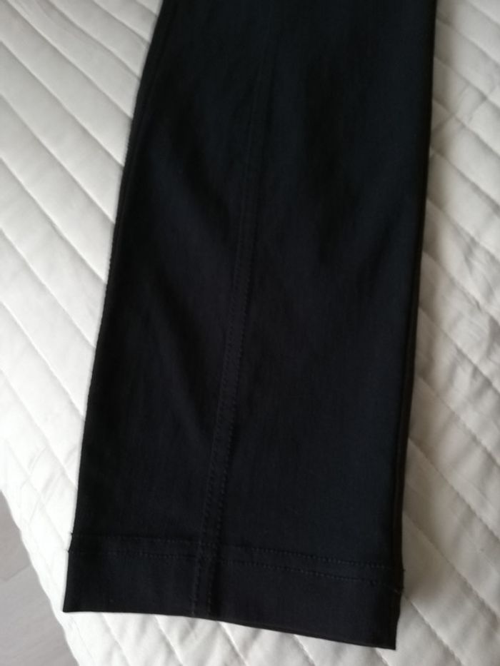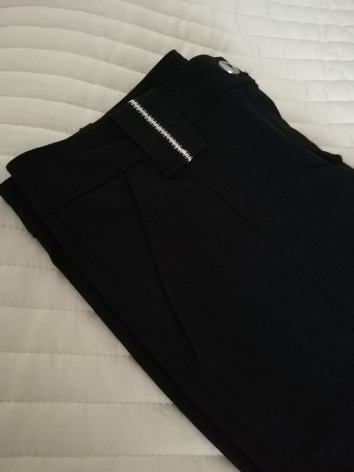 Un pantalon neuf noir 7/8 de taille 38 avec une surpiqûre sur le devant et une petite fantaisie à la ceinture.