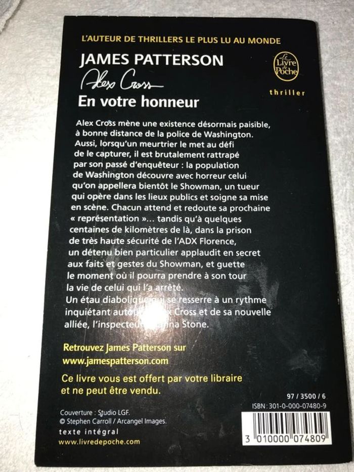 EN VOTRE HONNEUR de James Patterson Edition LE LIVRE DE POCHE 350 pages ISBN 301-0-000-07480-9