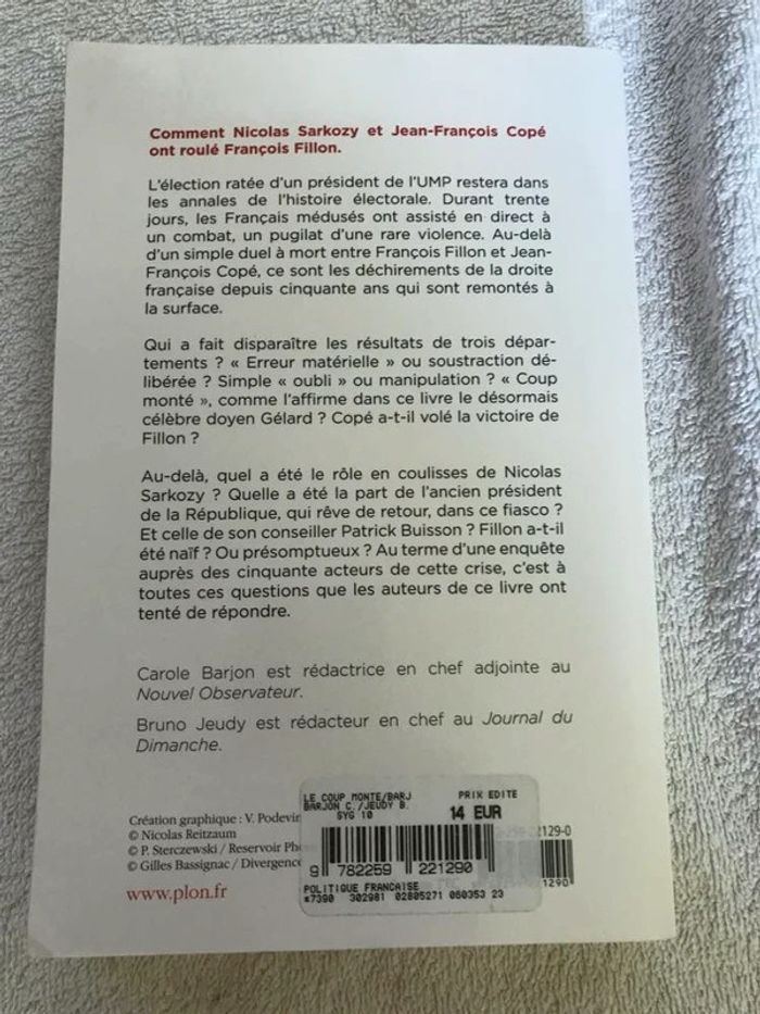 Le coup monté de Carole Barjon et de Bruno Jeudy edition PLON 210 pages ISBN: 978-2-259-221290