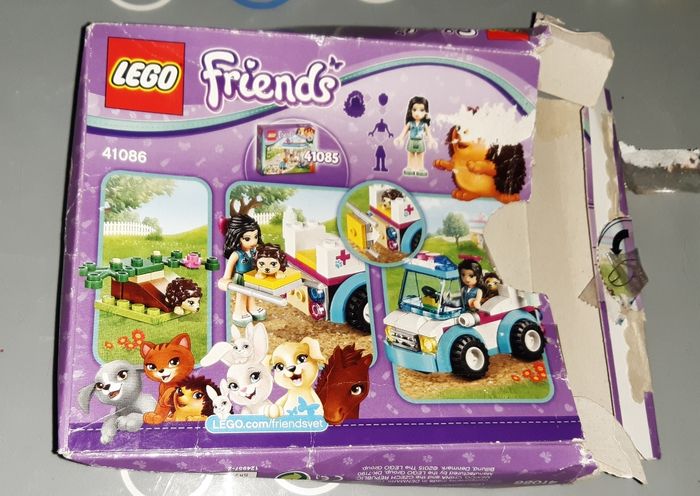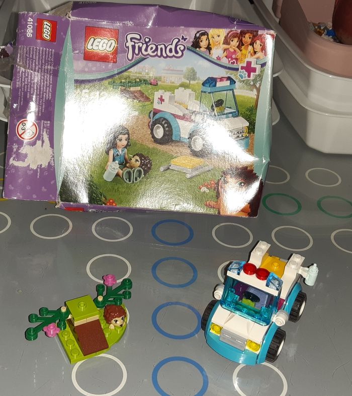 L'ambulance vétérinaire Lego Friends 41086 Des 5 ans Avec boite qui est abîmée (voir photo) Sans notice Telecharchable gratuitement sur le site Manque la figurine et une pièce (voir photos) Quelques pièces de changer (voir photos) N'empêche pas la construction ni de jouer Très bon état