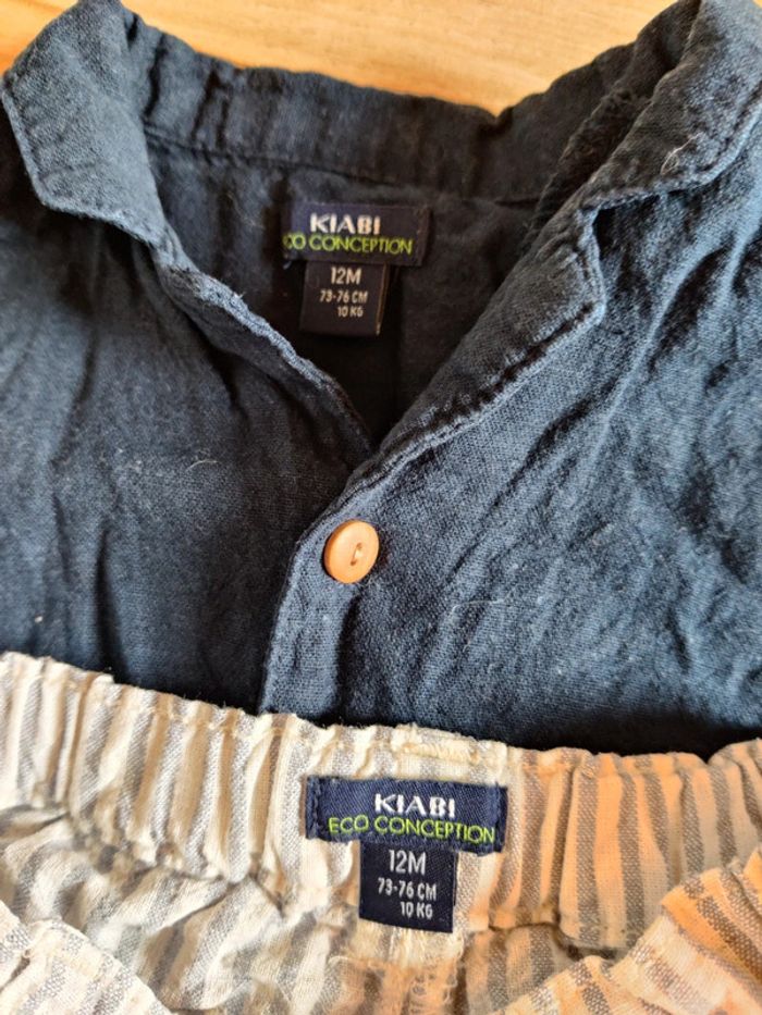 Ensemble en lin short rayé gris clair et chemise manches courtes marine Kiabi 12 mois Très bon état #elina_12mois