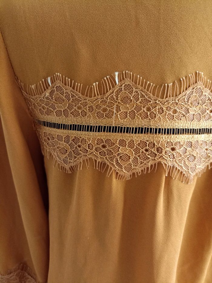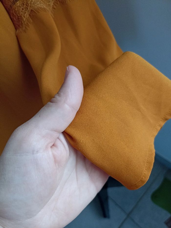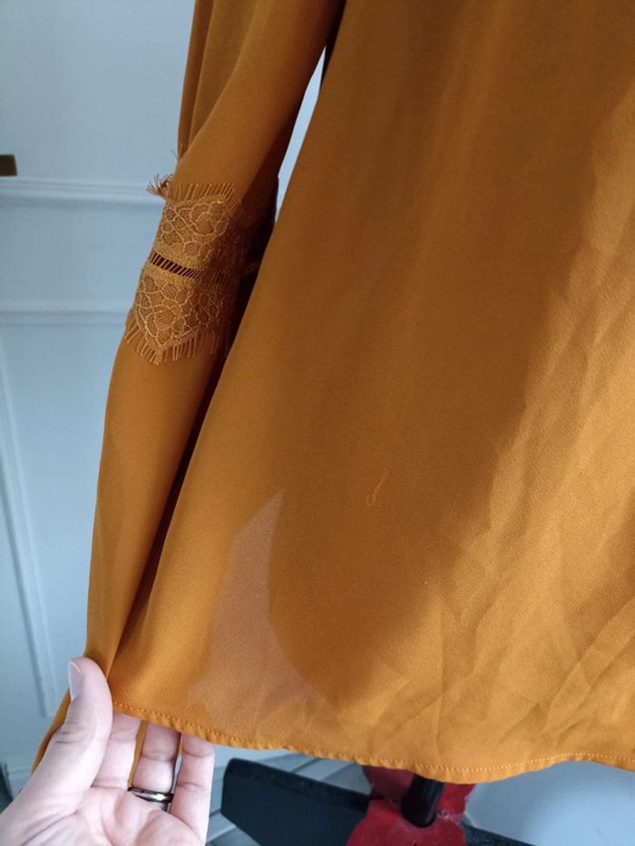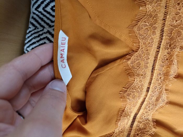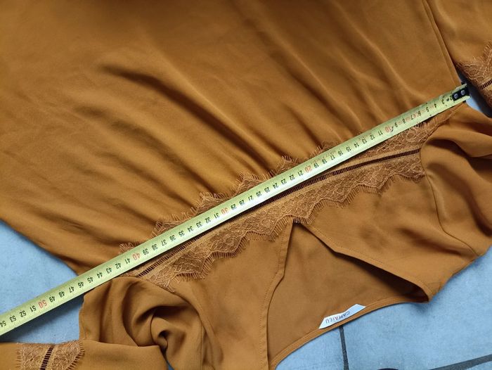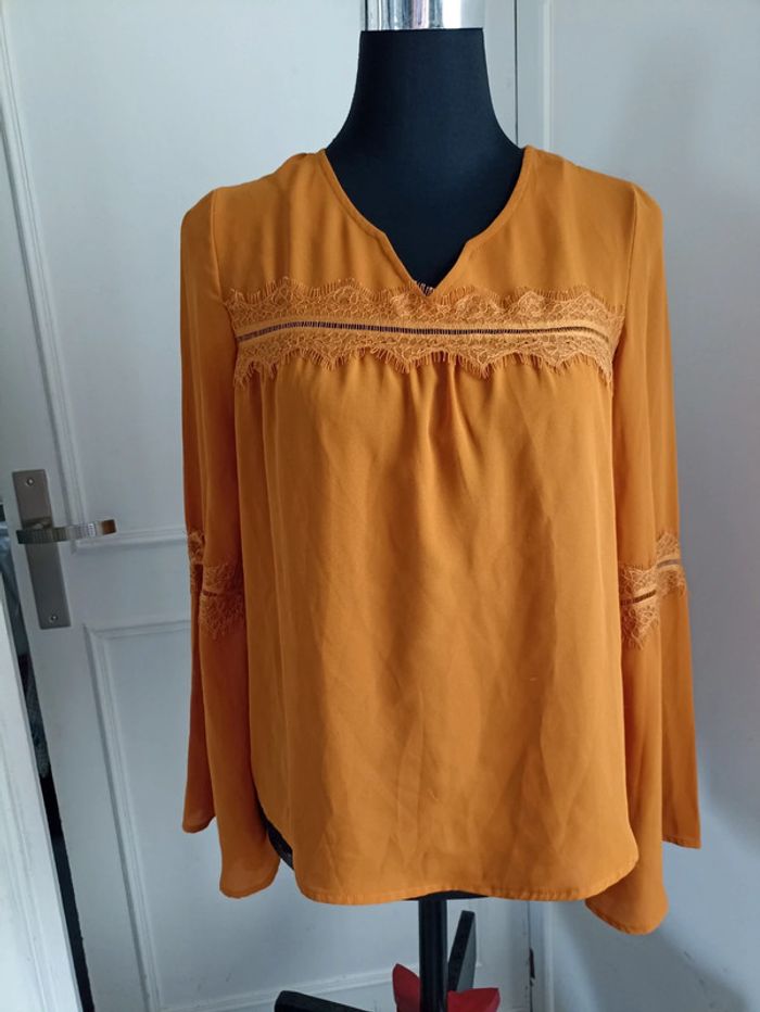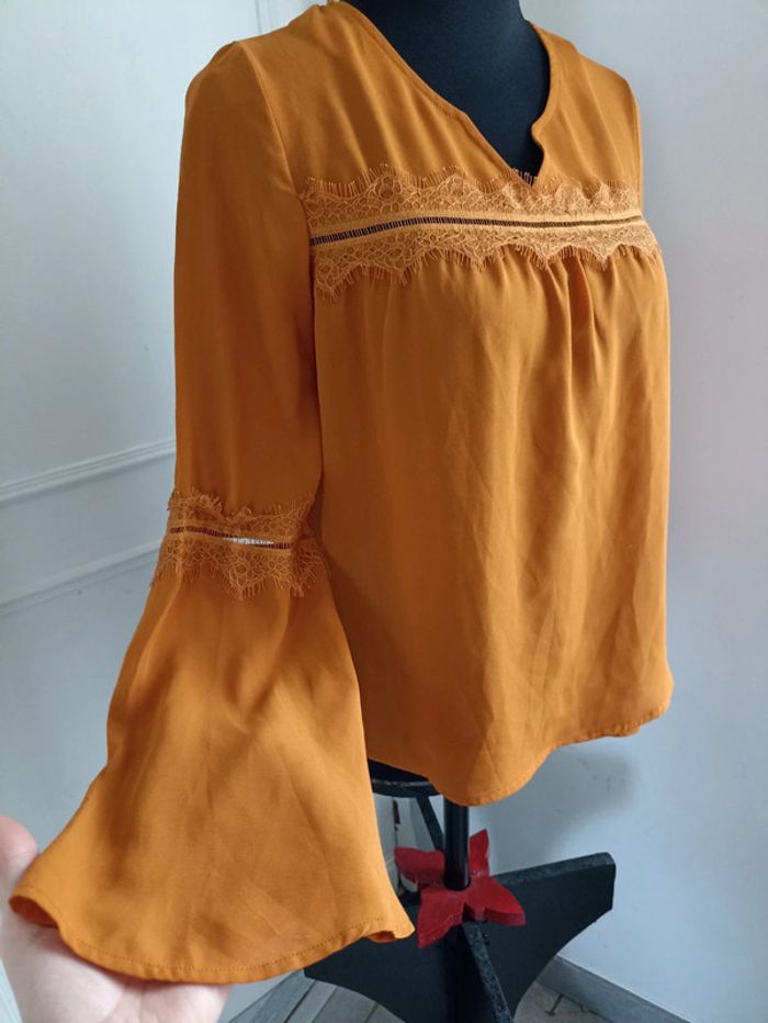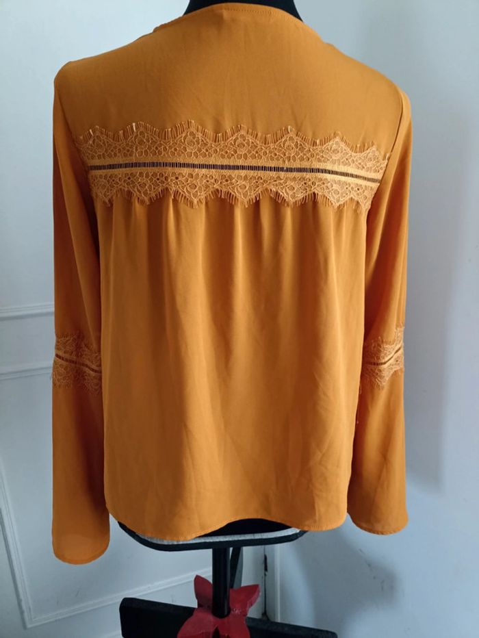 👕Blouse moutarde camaïeu taille M il me semble, il n'y a plus l'étiquette, merci de regarder la mesure. Petits fils et un tout petit point au bout de la manche, tout est en photos.