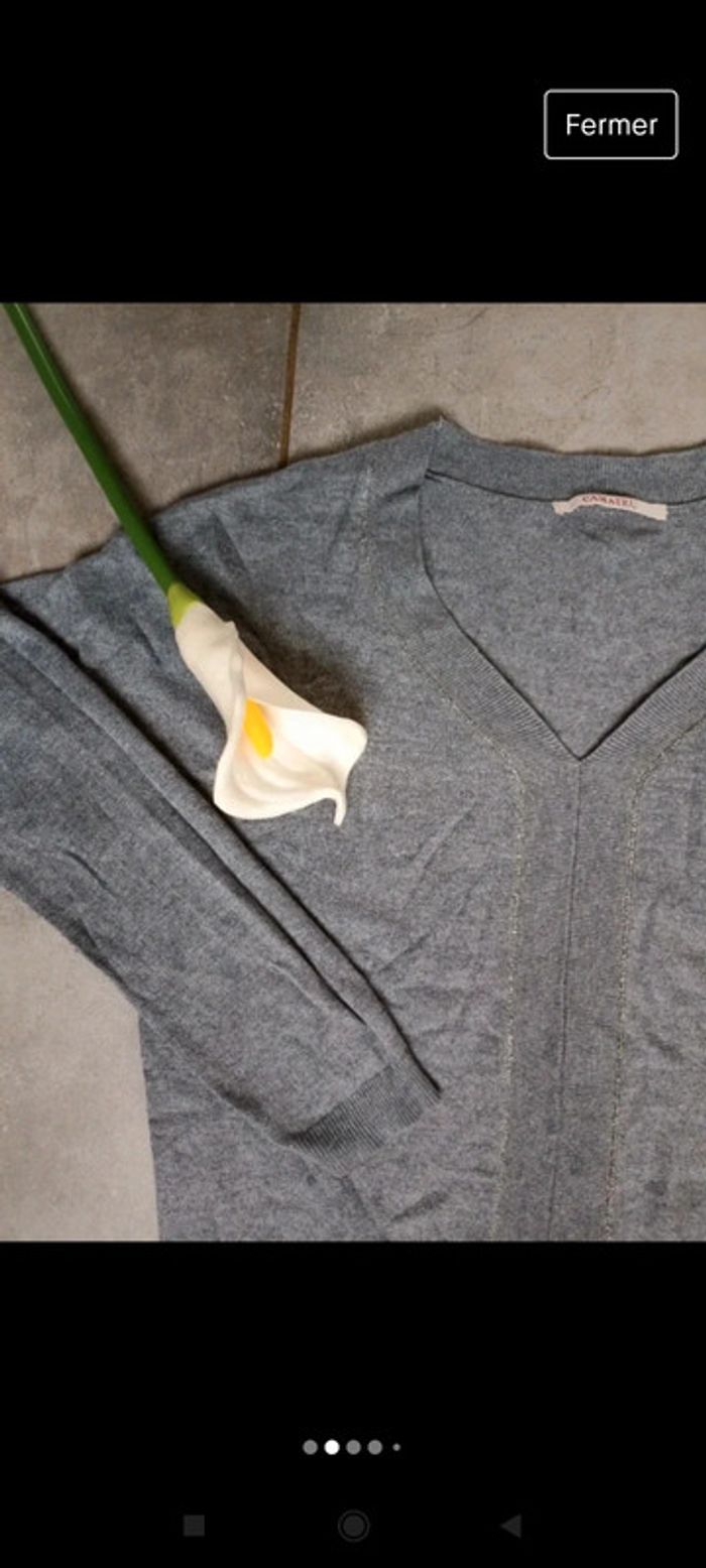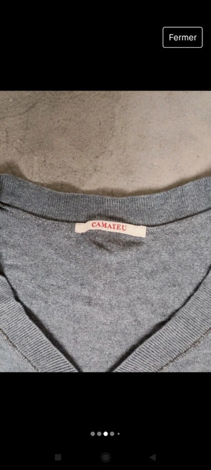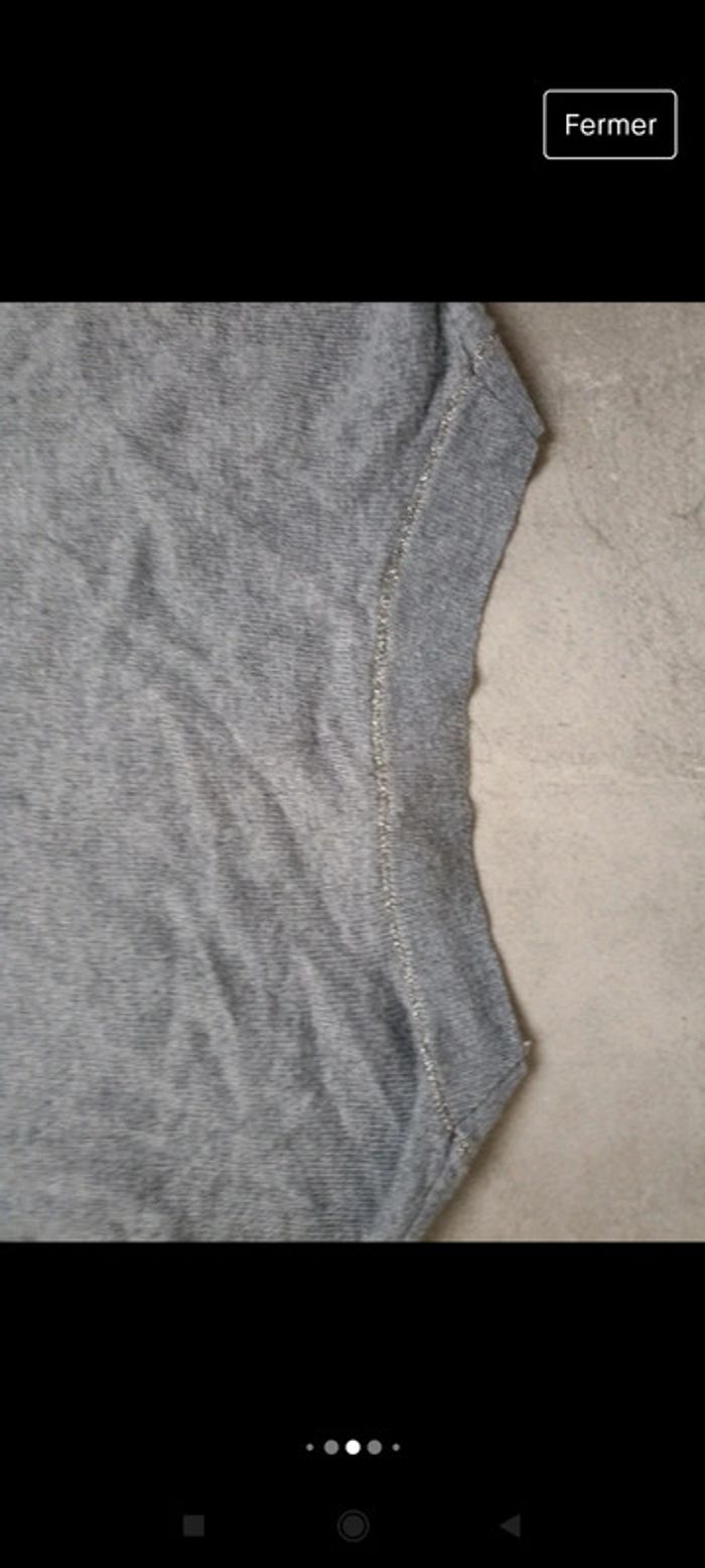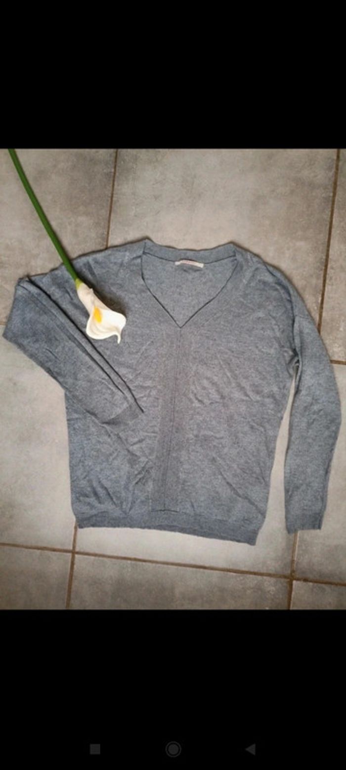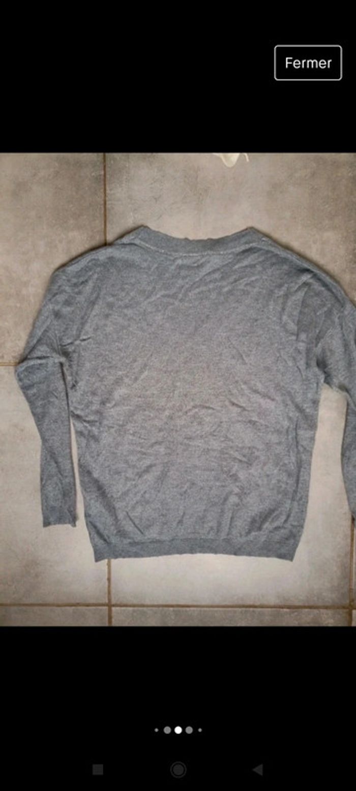 👕Joli pull gris avec petit liseré argenté brillant marque camaïeu taille S. 🧵 légère Petites bouloches.