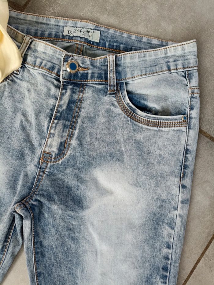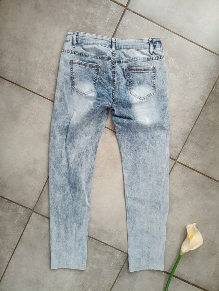 👖 jean BS fashion taille 40. Petits boutons avec du bleu dedans. Il a une tâche a peine visible voir la photo ou je montre.