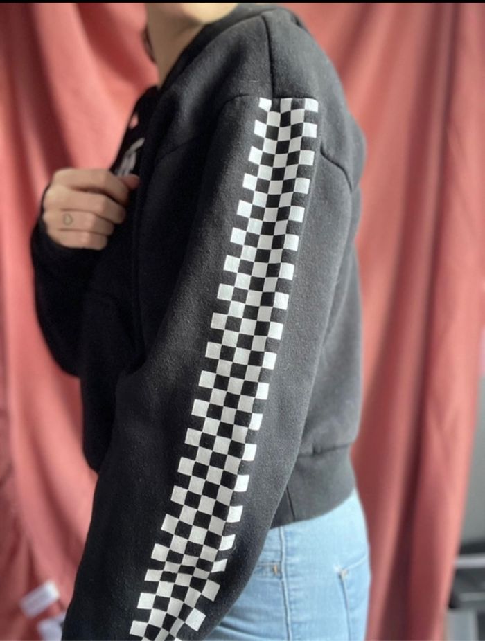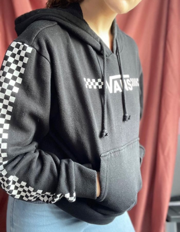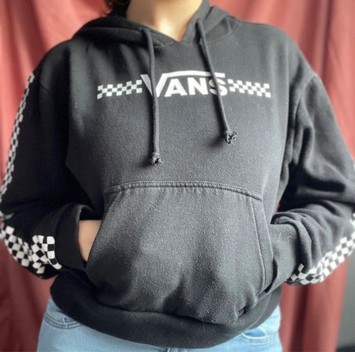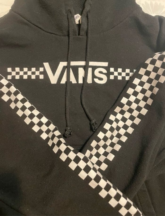 Sweat à capuche vans, crop top, taille S. Aucun défauts. ✨ Bien prendre en compte les dimensions mise en description🤍 Pour plus de renseignements, de photos, n’hésitez pas à me contactez🤍 l:50 cm L:47 cm
