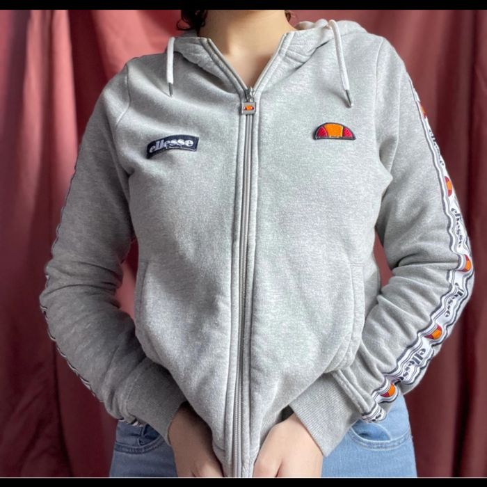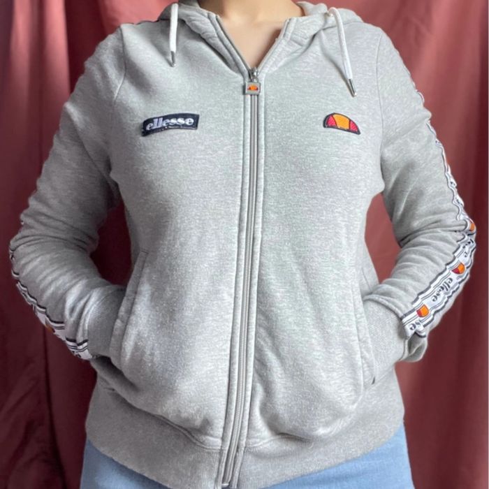 Gilet à capuche Ellesse, taille 38 mais taille S, bien prendre en compte les dimensions noté en bas de la description. Très bonne état.✨ pas de défauts. N’hésitez pas pour plus de renseignements et photos.🤍 l:35 cm L:58 cm