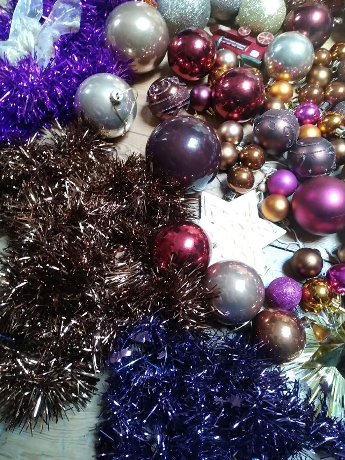 Lot guirlandes et Boules tons marron cuivre violet prune rouge bordeaux beige rose poudré - photo numéro 1