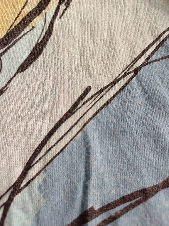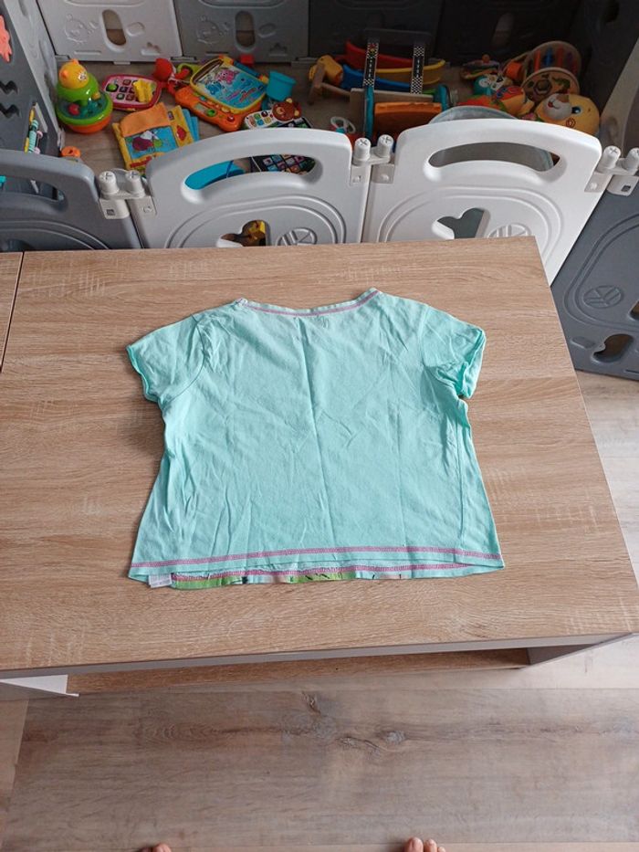 Tee shirt manches courtes taille 9/10 ans, présence de légère bouloches, d'une petite tâche sur l'avant et d'un petit trou sur l'arrière