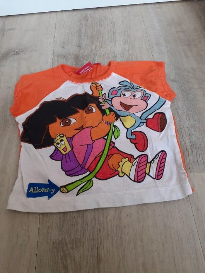 Tee shirt taille 2 ans, 1 trace noire au dos Marque Dora l'exploratrice