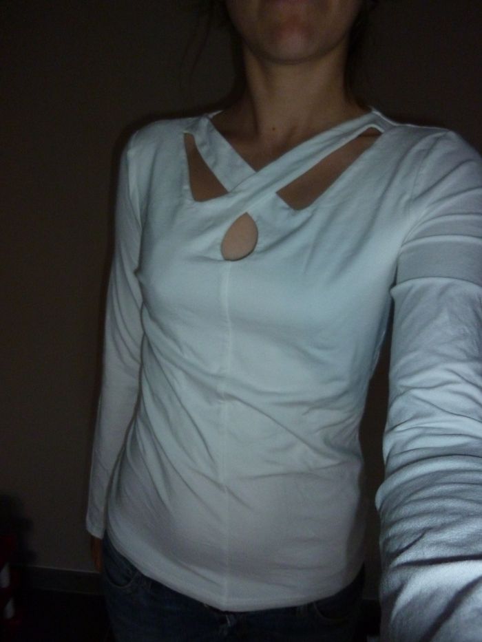 Tshirt manches longues blanc croisé devant Taille : 36 Très bon état