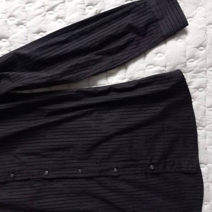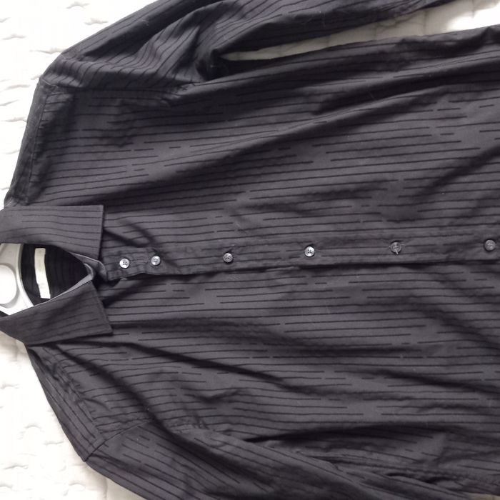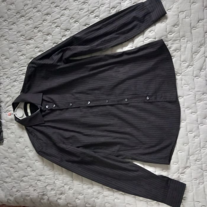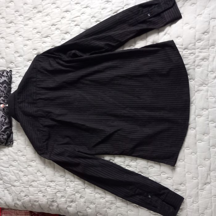 manches longues avec fermeture boutons, tissu avec fines bandes imprimées de coloris noir pour un joli effet, boutonnage (2 boutons supplémentaires), bas arrondi, composition 55% coton, 45% polyester largeur épaules 44 cm , aisselles 52cm longueur épaules-bas 63 cm et aisselles-bas 41 cm Possibilité d offre en lots. Envoi rapide et soigné
