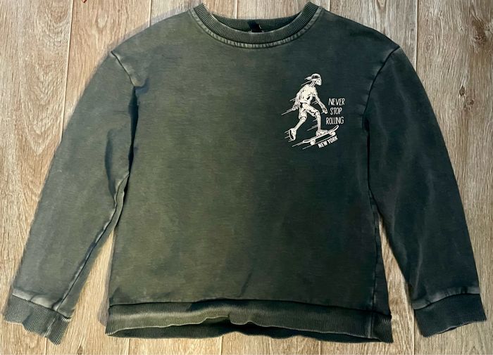 Sweat de la marque Kiabi Taille 8 ans Couleur gris-bleu Petites traces d’utilisation Occasion, bon état