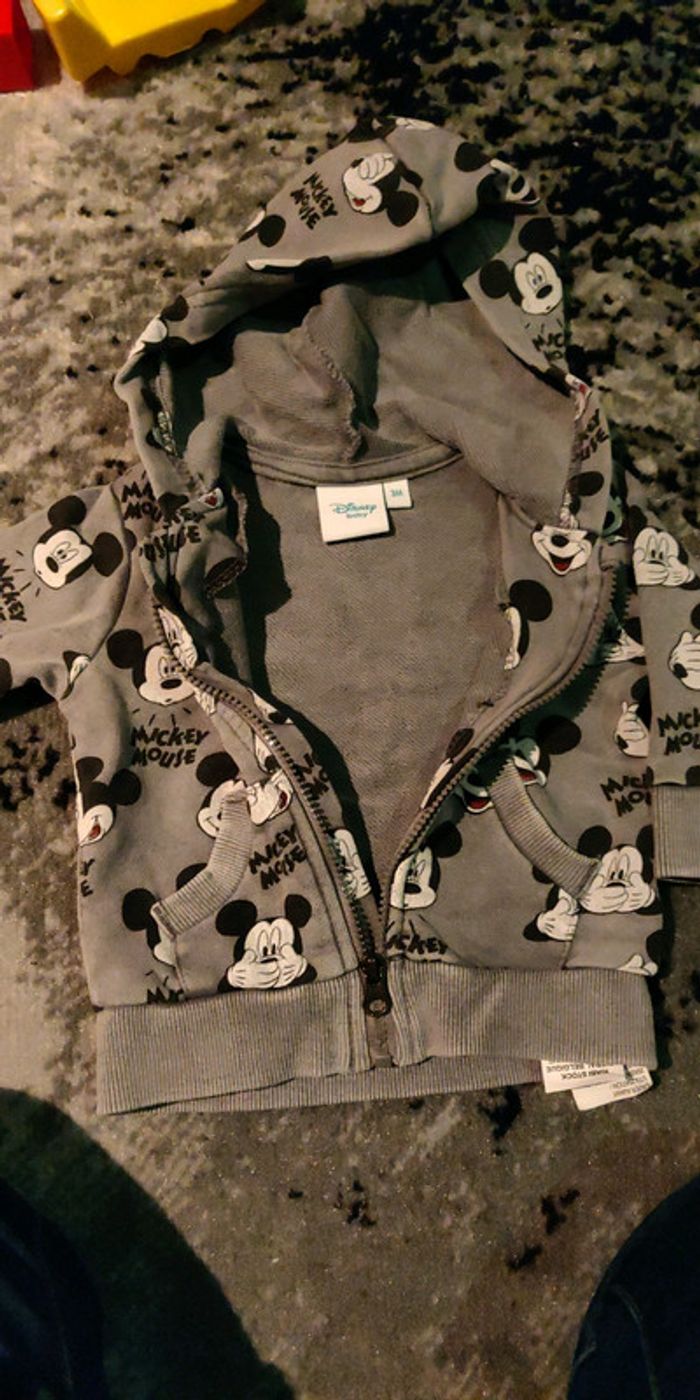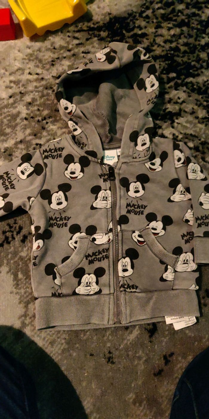 Veste Mickey grise effet délavé avec tête de Mickey. Taille 3 mois.