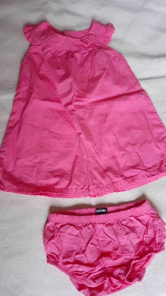 Vends une robe en coton rose unie avec culotté assortie marque Kiabi 6 mois