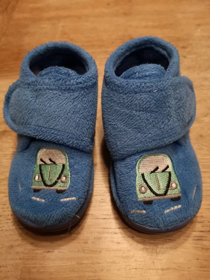 Pantoufles bleues en velours avec dessin bus Taille 22
