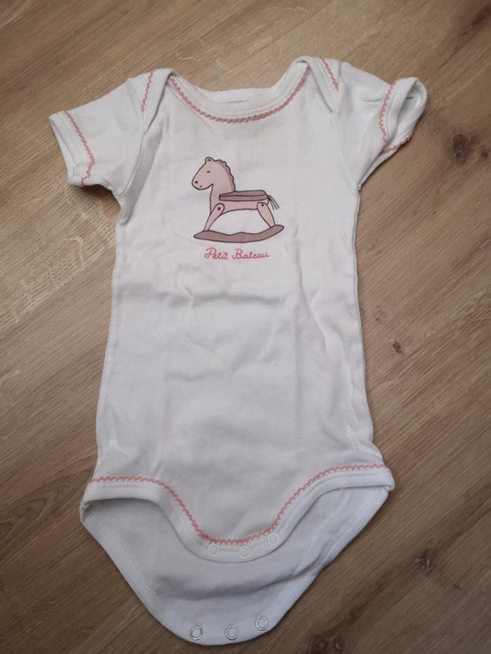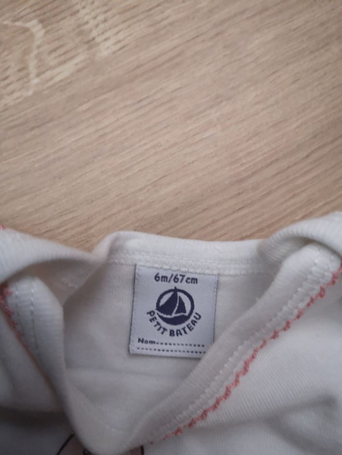 Body manche courte beige et rose en coton Petit Bateau 6 mois #fragnely_girl_sixmois