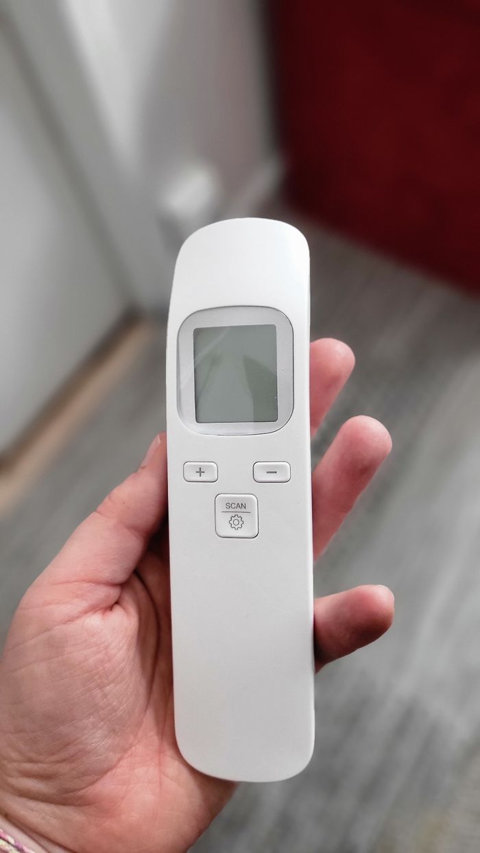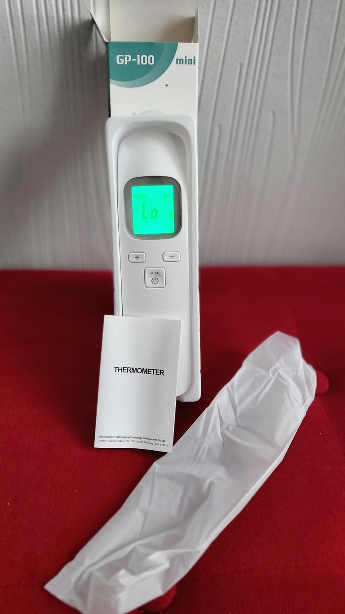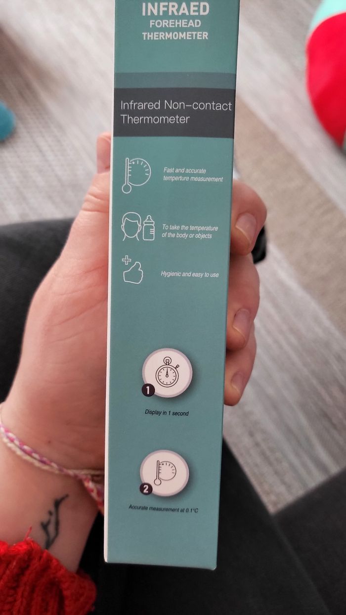 Mini thermomètre portatifs infrarouge sans contact Jamais utilisé, produit neuf avec encore l'emballage et la notice ( Il a été allumé juste pour la photo)