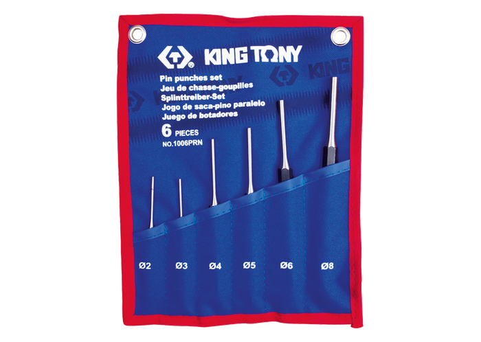 Trousse de chasse-goupilles - 6 pièces Chasse goupille : ∅ 2 x 30 , ∅ 3 x 40 , ∅ 4 x 50 , ∅ 5 x 50 , ∅ 6 x 50 , ∅ 8 x 50 Marque KINGTONY Reference 1006PRN Outillage Professionnel - Garantie à vie NEUF