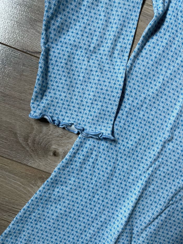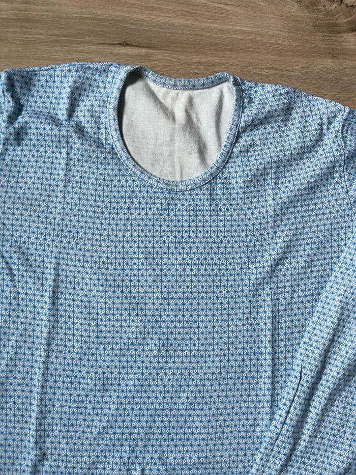 Chemise de nuit 10 ans fond blanc à motifs géométriques bleus en coton à manches longues État neuve CPY